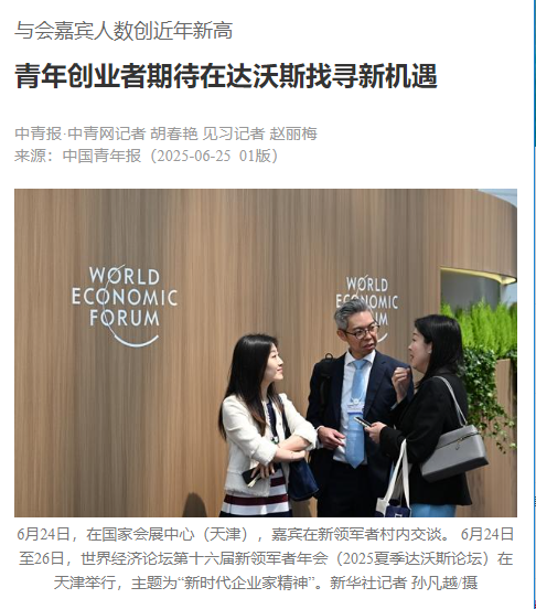 天津日報《交流前沿觀點 碰撞思想火花|2025天津夏季達沃斯論壇場外互動活動--“與青年科學家面對面“舉辦》報道中寫道: